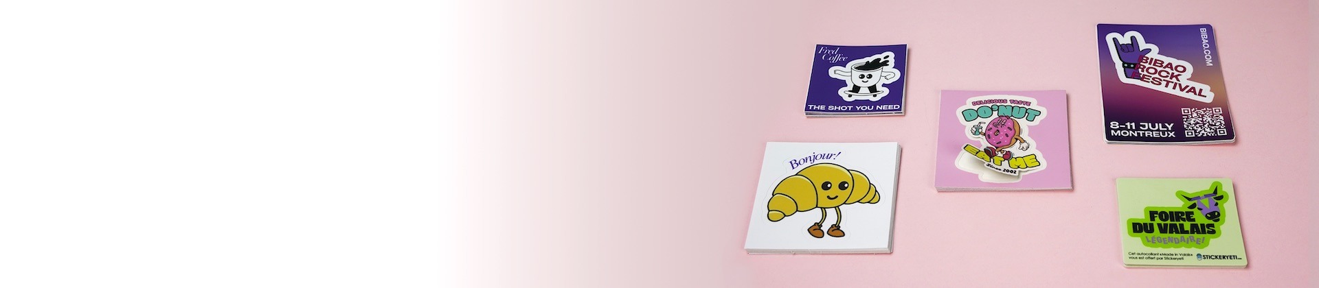 Les autocollants Kiss Cut (ou découpe mi-chair) sont une alternative originale et pratique ! Fabriqués sur notre vinyle blanc de qualité premium, ils adhèrent sur toutes les surfaces lisses.